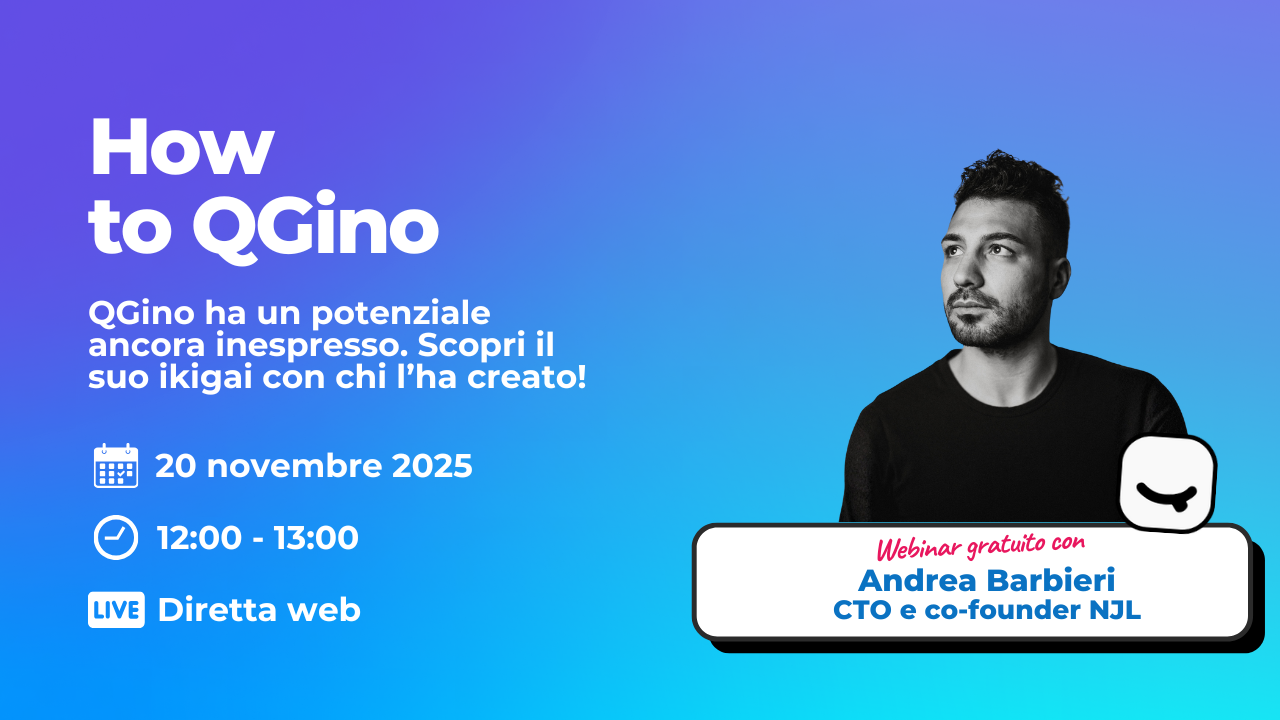 Ti iscrivi. Ricevi il link e ascolti le dritte di Andrea Barbieri che ti mostra qualche spunto in più per usare QGino in modo ancora più efficace e divertente.